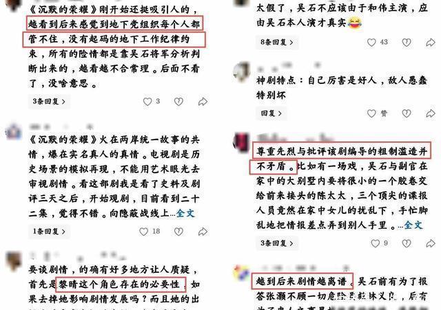 历史不用捧上神坛,也不能随便踩在脚下,你可以改情节,但别动它的根,可以加感情,但别把信仰当恋爱来演,角色可以犯错,但别让他们成笑话,观众愿意跟着你走,但你得认真写,也得对得起那段日子。 《沉默的荣耀》不是拍得不好,是压根没打算拍好,它拿严肃的事当消遣,把英雄当摆设,观众生气,不是因为剧情无聊,是因为它不把人当人,也不把历史当回事,你嘴上说真实改编,手里却乱编一通,大家不是傻子,你骗一次,就别想再骗第二次。